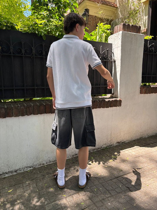 Bermuda Baggy Cargo Negra con Flecos